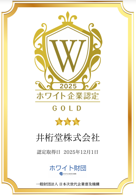 このたび井桁堂株式会社は、一般財団法人 日本次世代企業普及機構(以下、ホワイト財団)が実施する「ホワイト企業認定」において、ゴールドランクを取得いたしました。